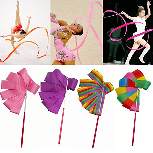 Specification: 2M / 4M Kleurrijke Gym Dance Ritmische Art Gymnastic Linten Ballet Streamer Tollende Rod Stick for Training ZRONG